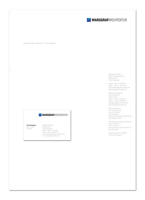 Zu dem Gestaltungsumfang gehörte das Redesign des Logos, die Erstellung des Corporate-Manuals und die Gestaltung von Geschäftsdrucksachen. Darüber hinaus wurde der Internetauftritt www.marggraf-architektur.de mit neuem Design konzipiert und umgesetzt.