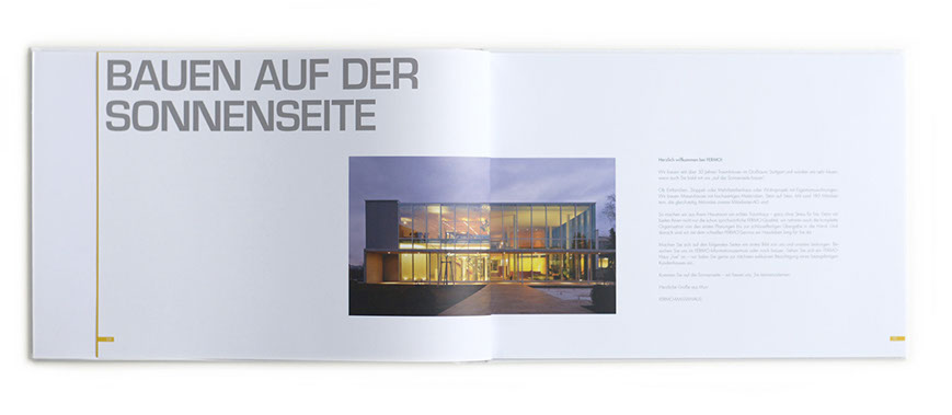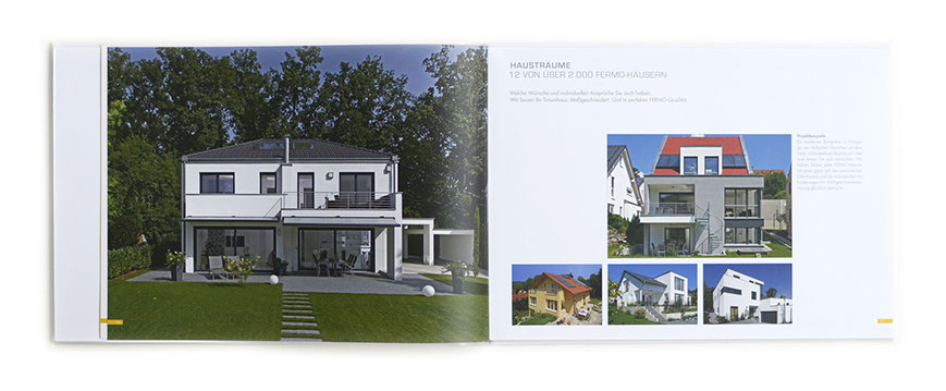 Das Image-Buch soll neue Kunden über das Angebot von FERMO informieren und gleichzeitig Lust machen, sich für ein Haus von FERMO zu entscheiden. Das 44-seitige Hardcover-Buch wurde sehr hochwertig mit Leineneinband und Blindprägung umgesetzt.